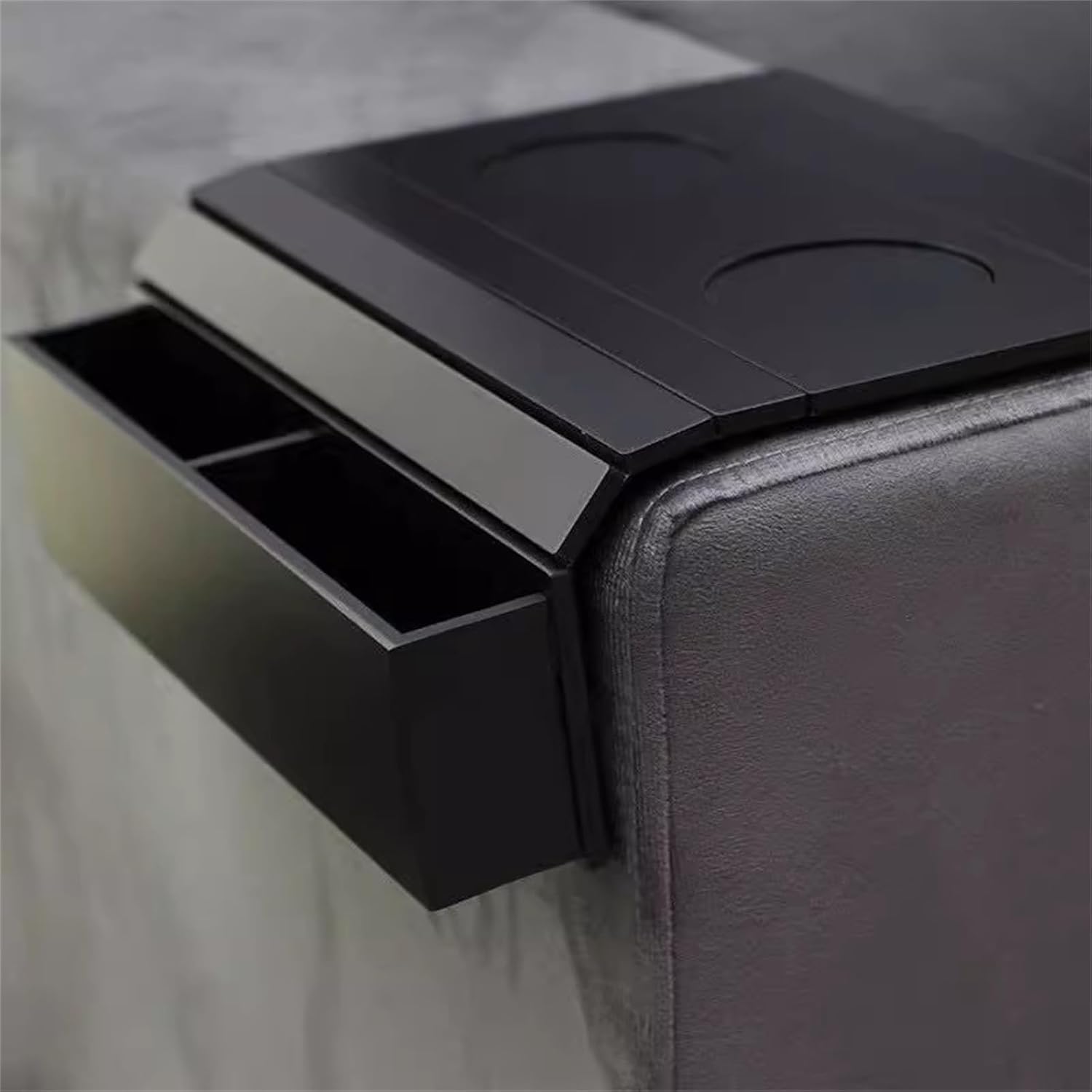 しっかり固定できる安定設計で、飲み物・スマホ・リモコンを手元にすっきりまとめます。
